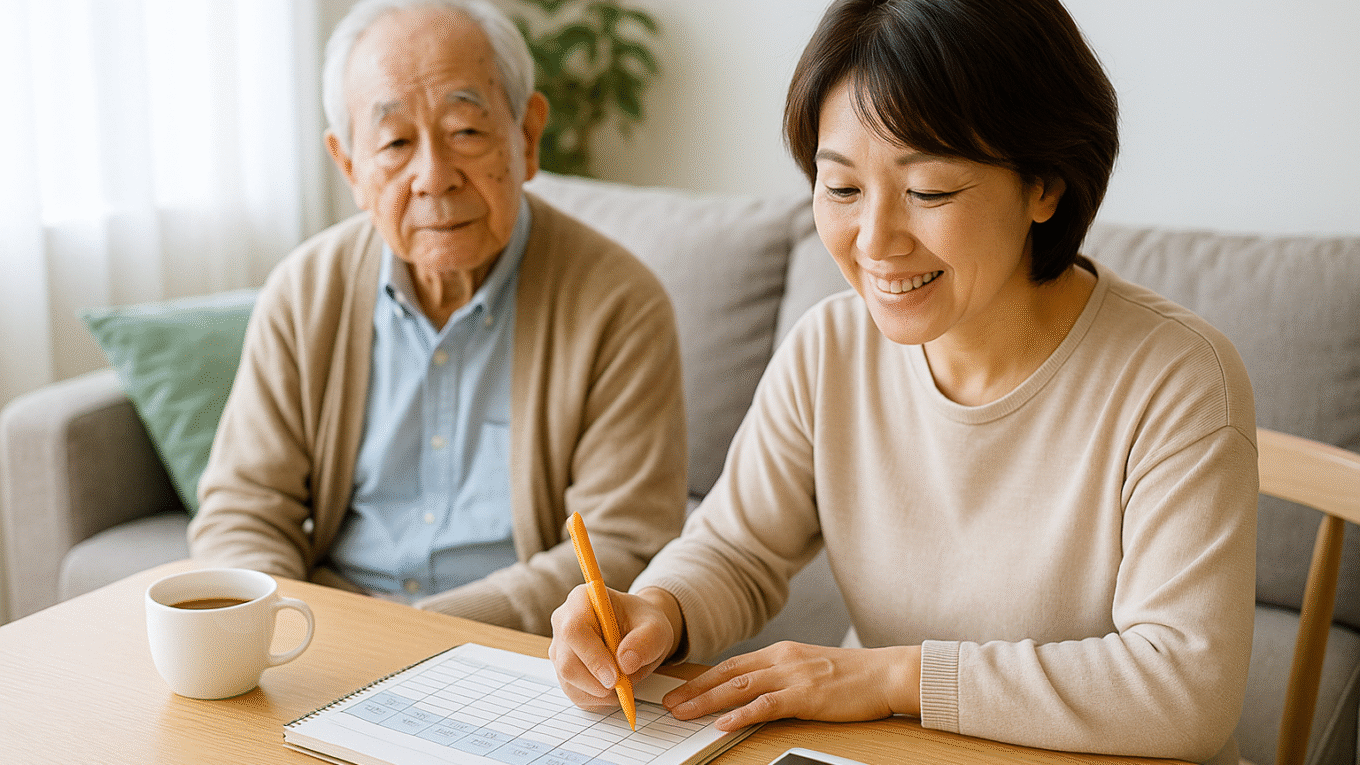 人気記事Popular Post 認知症と在宅介護|家族が無理なく続ける工夫 【一人っ子の介護不安】両親が元気なときにこそ考えたい「いつか来る現実」と心の準備 認知症ケアの基本|家族ができるサポート方法 はじめての介護福祉入門:知っておきたい基本情報 認知症ケアに役立つデイサービスの活用方法 介護福祉サービス一覧:デイサービス・訪問介護・ショートステイ 認知症予防の生活習慣|今日からできること 最新記事News 【一人っ子の介護不安】両親が元気なときにこそ考えたい「いつか来る現実」と心の準備 2025.12.11 Uncategorized 認知症と在宅介護|家族が無理なく続ける工夫 2025.11.23 介護福祉 認知症ケアに役立つデイサービスの活用方法 2025.11.23 介護福祉 Uncategorized デイサービス・デイケア 介護福祉 在宅介護 基本情報・手続き 家族の心のケア 施設介護 症状別対応方法 福祉用具・住宅改修 要介護認定の流れ 訪問介護サービス 認知症の基礎知識 認知症ケア